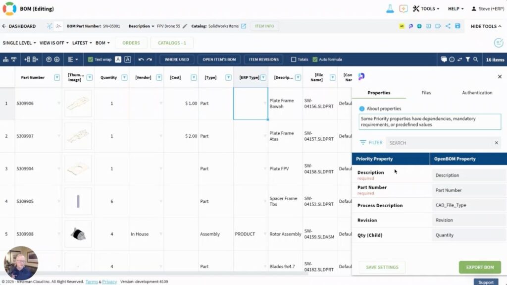 The initial release of the OpenBOM–Priority ERP integration concentrates on three core capabilities: a live system connection, synchronization of Items and BOMs, and support for images and files. Together, these cover the majority of engineering-to-manufacturing handoff scenarios without introducing unnecessary complexity.