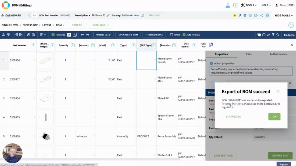 To give a practical sense of how this integration works, we’ve prepared a short demo video that walks through the core flow—from OpenBOM into Priority ERP. The demo focuses on the essentials: connection setup, item and BOM synchronization, and how files travel with the data.