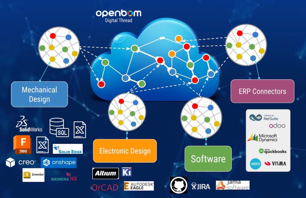 Instead of pushing data across systems through static exports, OpenBOM connects the two worlds through a shared data model — where relationships, not records, define truth.
